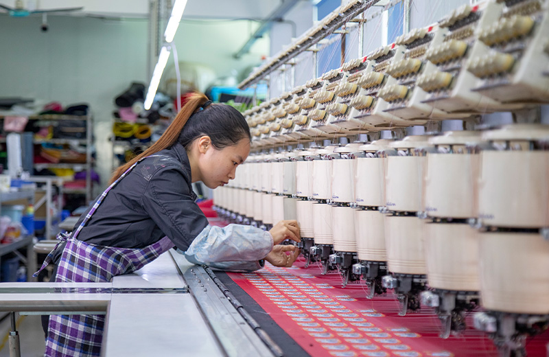 100多臺專業設備,瑞士及意大利引進的電腦織嘜機30臺,日本引進的電腦繡花機38臺,15000+㎡大型生產基地,350余名員工,30000+打樣制版經驗,日產量3000000+個,輕松應對各種加工及交期要求。