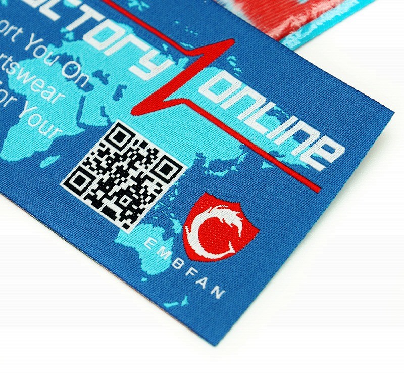 布標如布結構,簡單一經一緯上下交織而成稱之為簡單平面標。一般來說經紗都是固定的,或黑色,或白色,故又有黑平和白平之分,淺色底色標,一般用白平,深色者一般用黑平。布標的圖案和顏色主要有緯紗來表達,所表達出來的顏色會應為與經紗交叉的效果不一樣而又有所差異。因一般機器都有使用緯紗種類的限制,故所能表達的顏色也就有所限制,一般8種以內。由上可知,價格構成因素有:布標的寬度,即所用經紗量;布標長度,及各顏色沿經向的長度。為了更豐富地表達細節(jié)和顏色,把所的緯紗都加倍,稱之為雙面標,如果某個樣色需要更富立體感,再加一重紗線,稱之為重梭。除了洗滌和尺碼外,大多采用平面雙面標。布標都是紗線來表達圖案的,肯定與原來平面設計有差異,故不出小樣確認不可能做大貨。