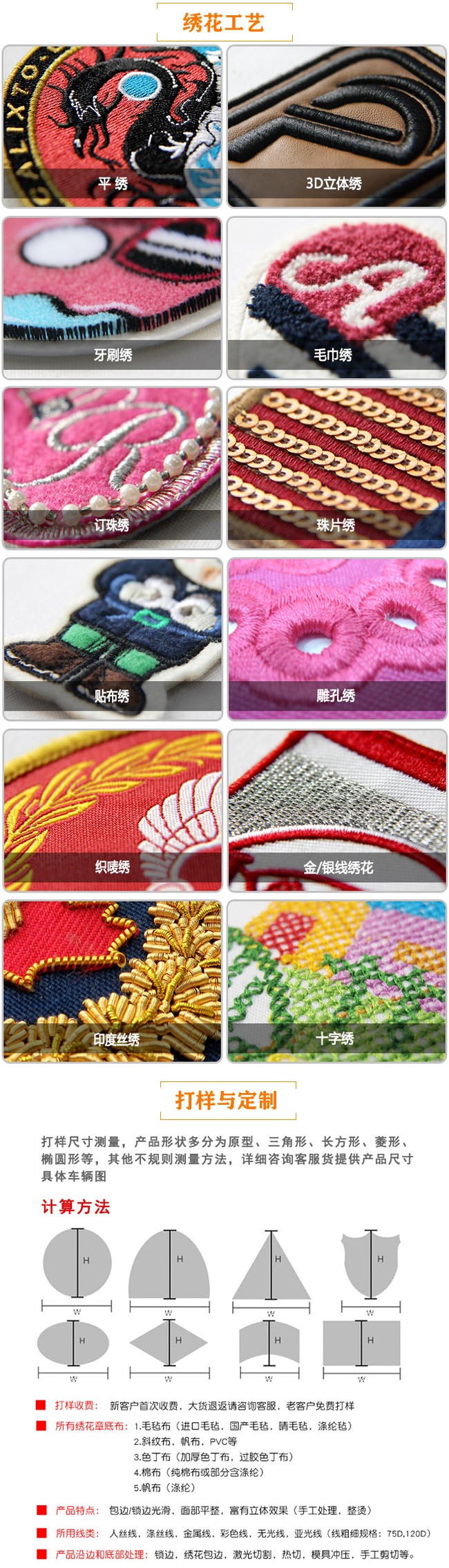 產品種類:3D立體繡、貼布繡、繡花章、毛巾繡/勾冷繡、特種混合繡
