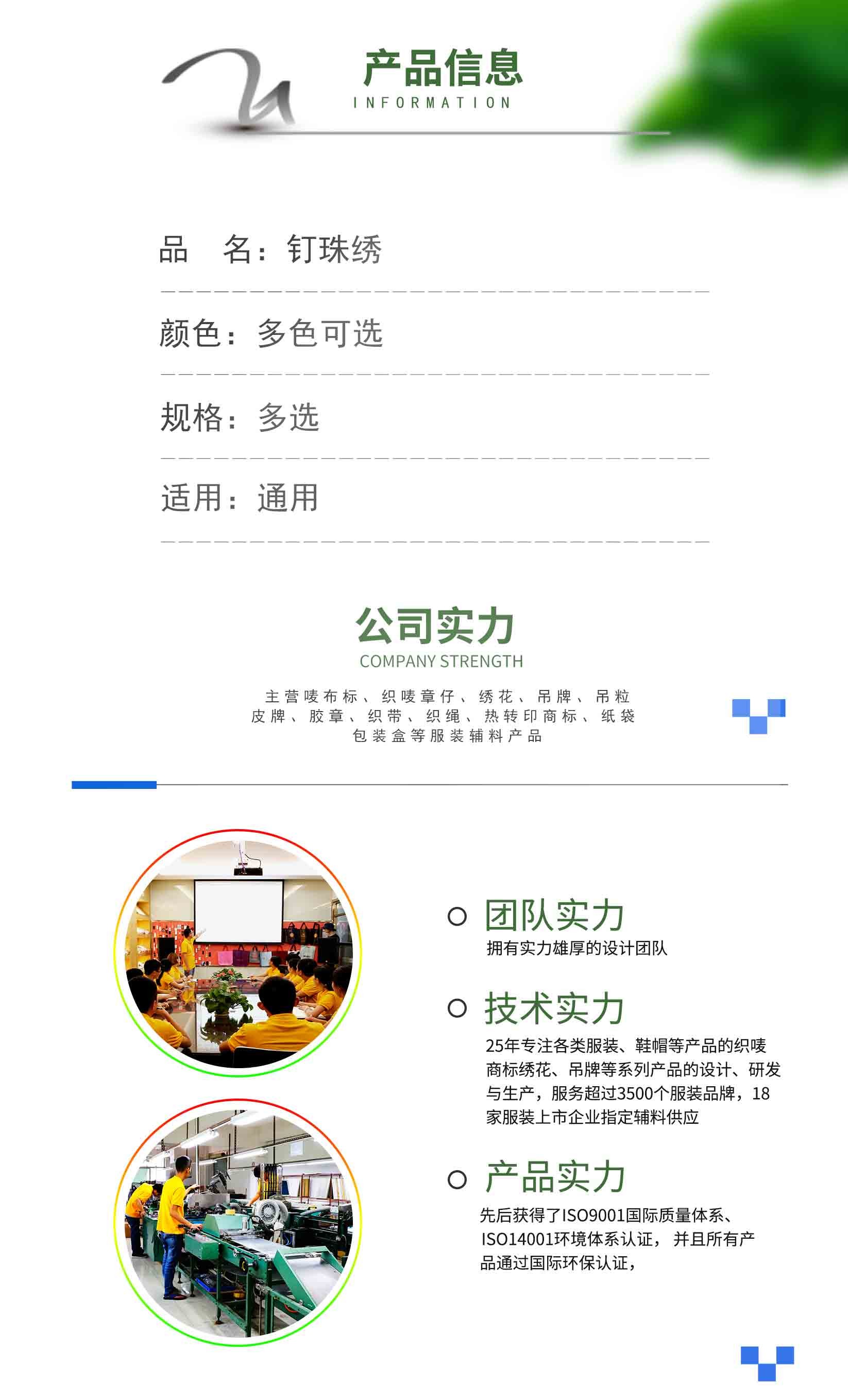產品工藝:電腦釘珠、電腦刺繡、背膠等支持多種工藝。