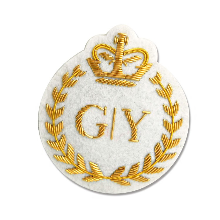 印度絲繡花章,早起源于印度,故又稱印度絲徽章、銅絲徽章、彈簧絲徽章、印度繡花章、金屬刺繡章等