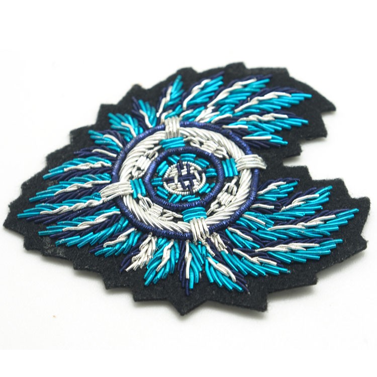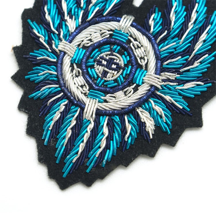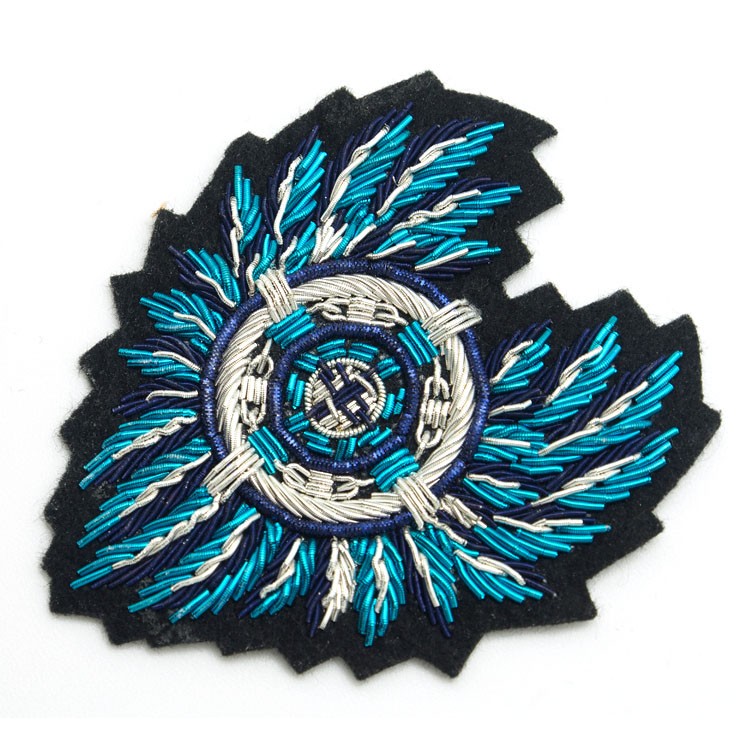 印度絲繡花章,早起源于印度,故又稱印度絲徽章、銅絲徽章、彈簧絲徽章、印度繡花章、金屬刺繡章等,采用印度特有的金屬線為主要材料,并用傳統的手工藝繡花,一針一線刺繡而成。其手工精細,令人嘆為觀止,繡出來的產品高檔華麗,層次分明。