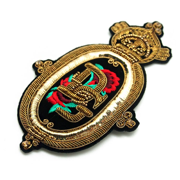 東莞廠家批發立體真金屬絲印度繡英倫風肩章胸章服裝箱包輔料