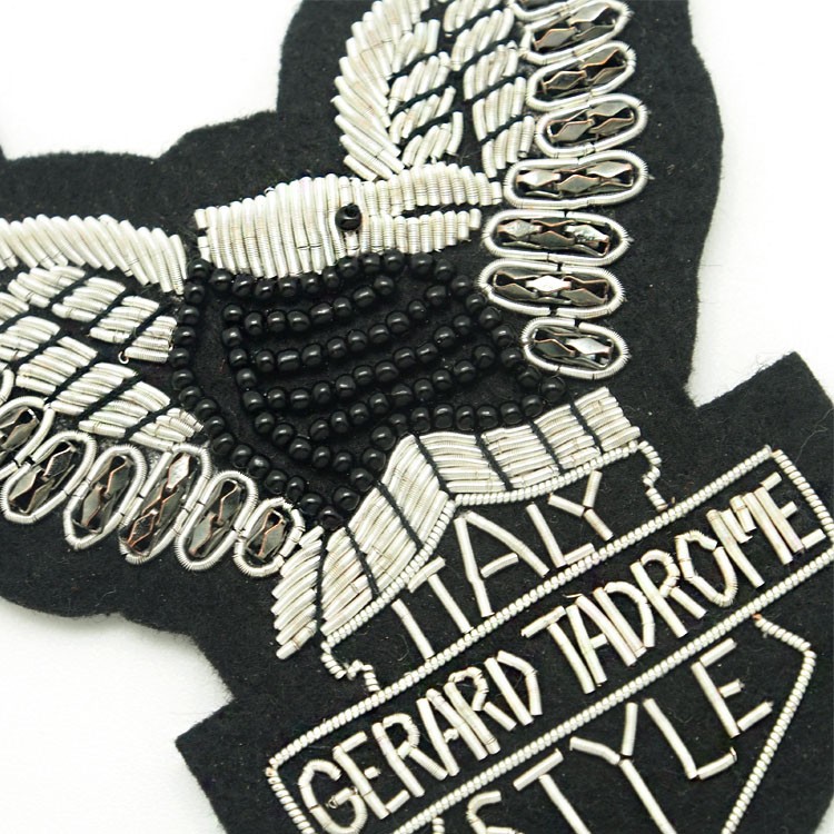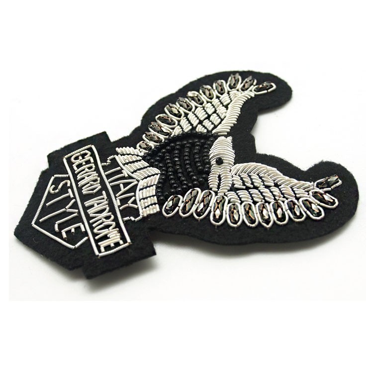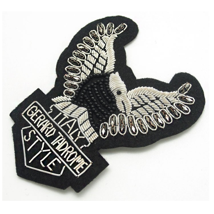 印度絲繡花章,早起源于印度,故又稱印度絲徽章、銅絲徽章、彈簧絲徽章、印度繡花章、金屬刺繡章等,采用印度特有的金屬線為主要材料,并用傳統的手工藝繡花,一針一線刺繡而成。其手工精細,令人嘆為觀止,繡出來的產品高檔華麗,層次分明。