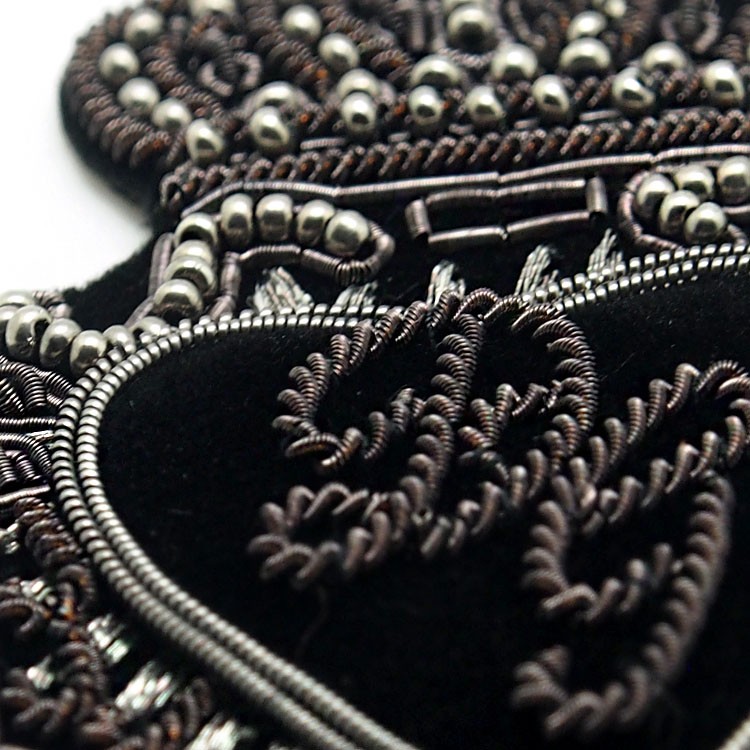 印度絲繡花章,早起源于印度,故又稱印度絲徽章、銅絲徽章、彈簧絲徽章、印度繡花章、金屬刺繡章等,采用印度特有的金屬線為主要材料,并用傳統的手工藝繡花,一針一線刺繡而成。其手工精細,令人嘆為觀止,繡出來的產品高檔華麗,層次分明。